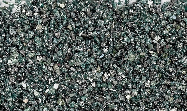 Green silicon carbide takes petroleum coke and high-quality silica as the main raw materials, adding salt as an additive, and is smelted through a resistant furnace at high temperature.Its hardness is between corundum and diamond, the mechanical strength is higher than corundum, brittle and sharp.